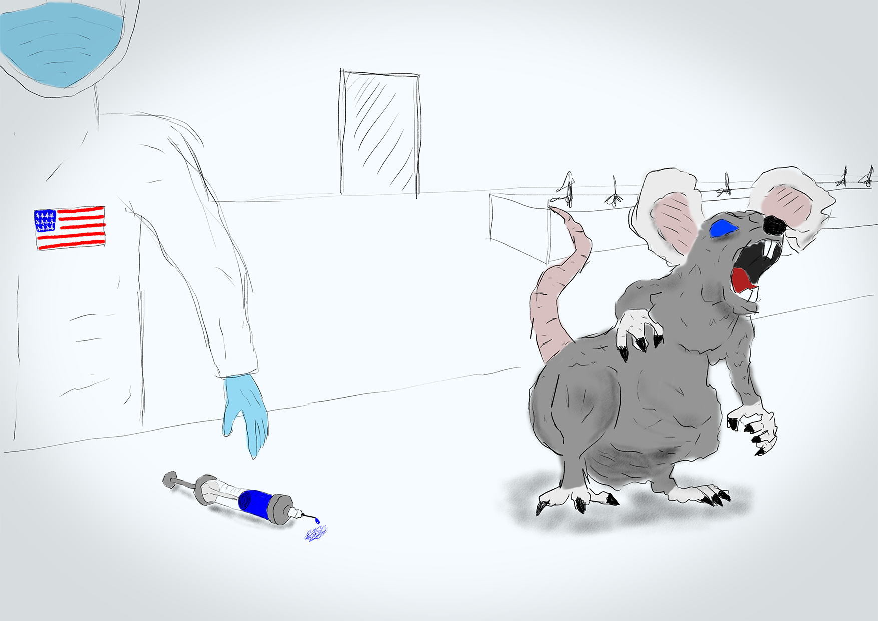 Ich wollte die Ratte noch mehr ins Zentrum rücken. Da kam mir die Idee, ihr eine Aura zu zeichnen….